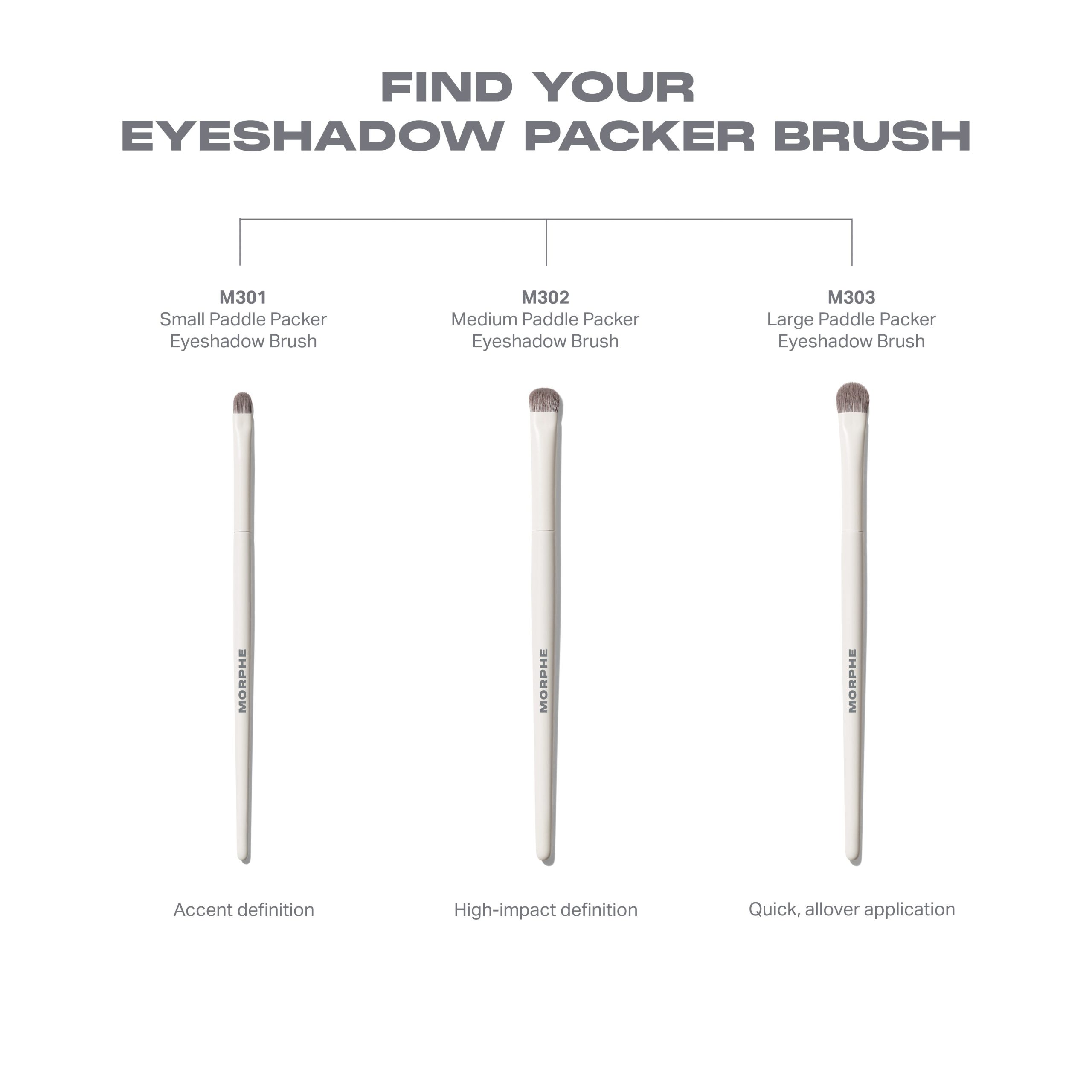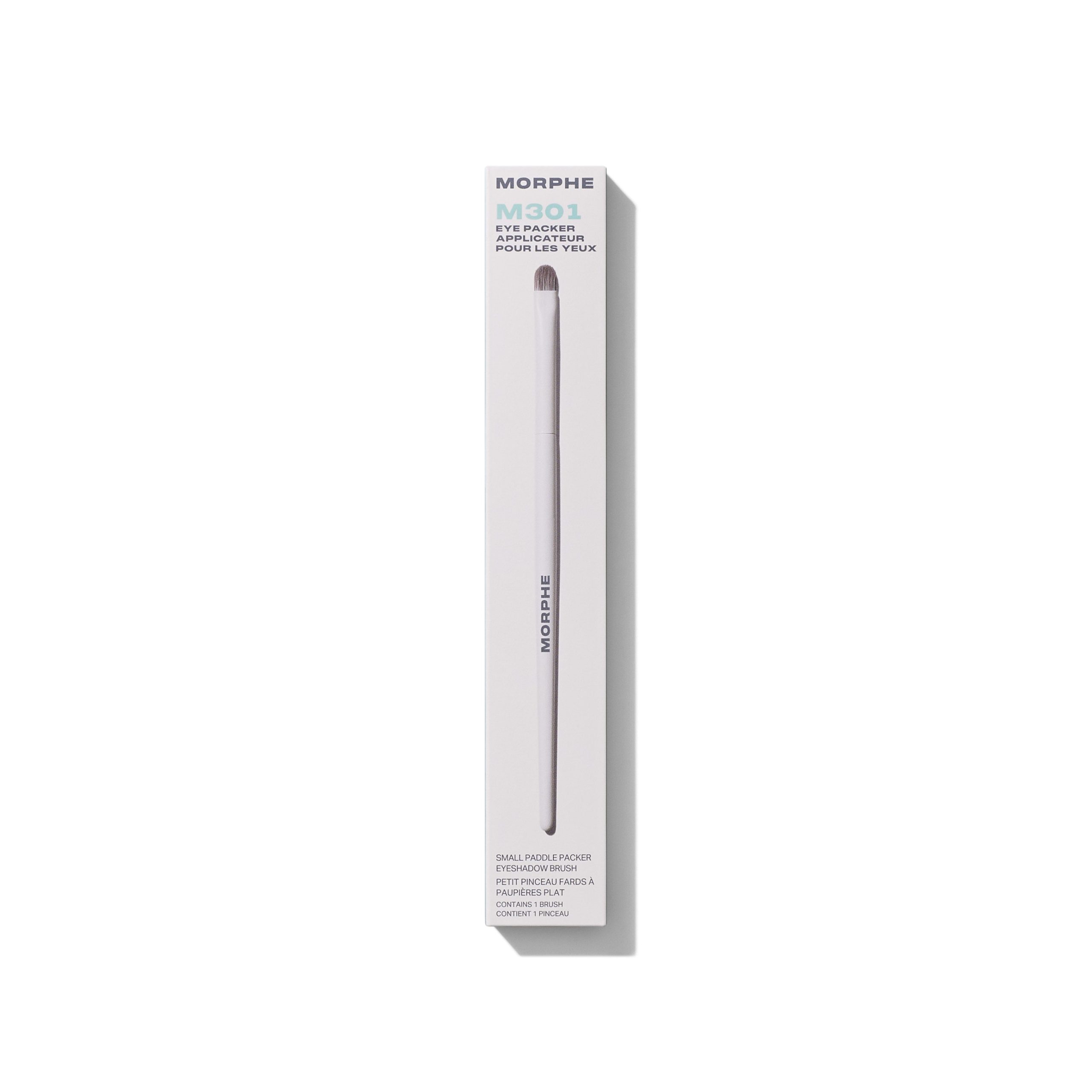 A packer brush is your go-to for stamping or patting on eyeshadow. This smaller version offers the most precision placement, making it ideal for accent work. Use the paddle on the M301 Small Paddle Packer Eyeshadow Brush to build product and the tip to define creases or lash lines. Need to smudge out application? It can handle that, as well.